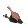 Wood and leather fireplace bellows with Black Suede Leather trim.